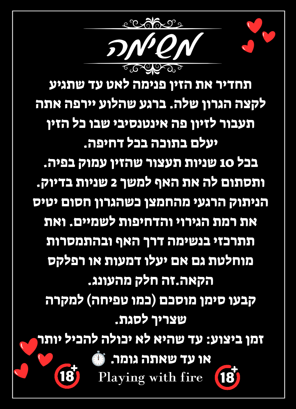 לאחר שאתה גומר עלייך לתת לה לגמור רק ע"י אצבעות והם יהיו שלך